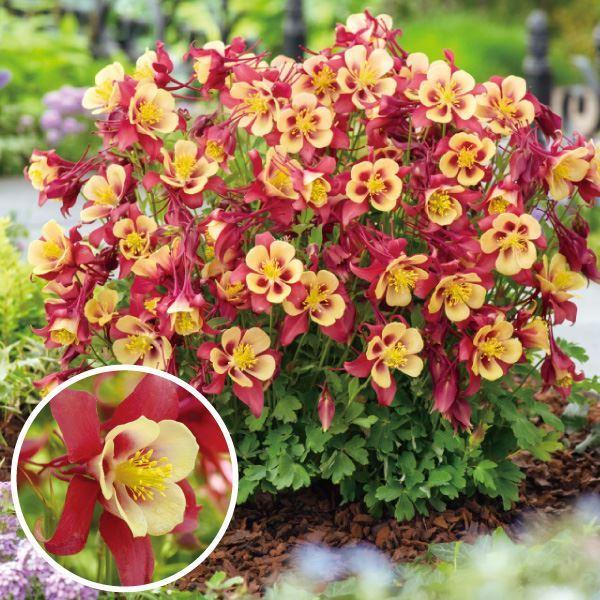 Amazon 100本のオダマキの種赤と白のダブルフラワー香りのよい花多年生の家宝コロンバインの花中庭のテラス植栽初心者の庭師の家族の園芸に適しています 花