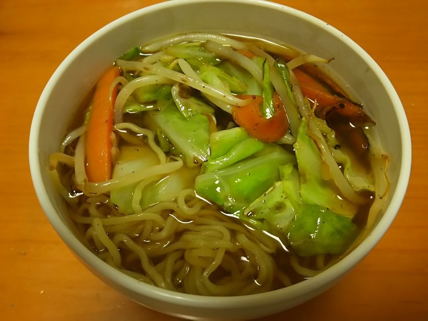 醤油ラーメン 野菜炒め乗せ 一人暮らし大学生のごはん日記 クックパッドブログ